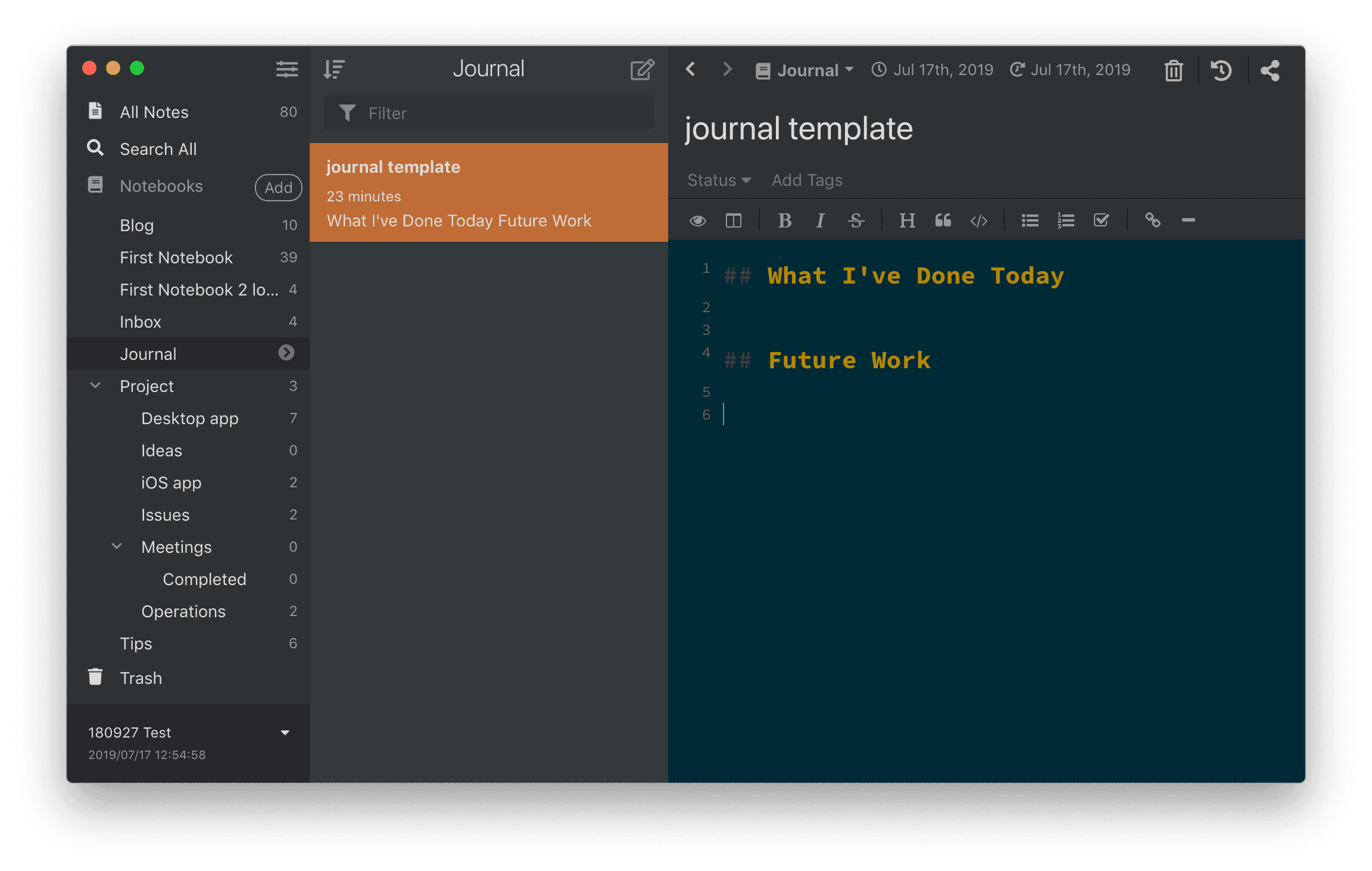 Once Inkdrop becomes a part of your daily workflow, you may want to save time and effort with note templates. Inkdrop provides powerful APIs to let you do that. Here is a walkthrough to make a note template for journaling.